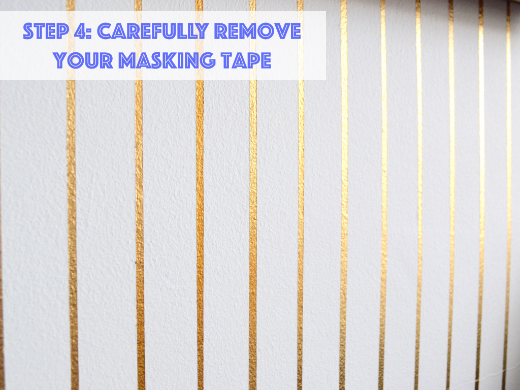 Before you paint your stripes, you will need to paint the area in your base colour (i.e. the same colour as your wall) This will prevent any of your coloured paint from bleeding through the tape and ruining your beautiful stripes.